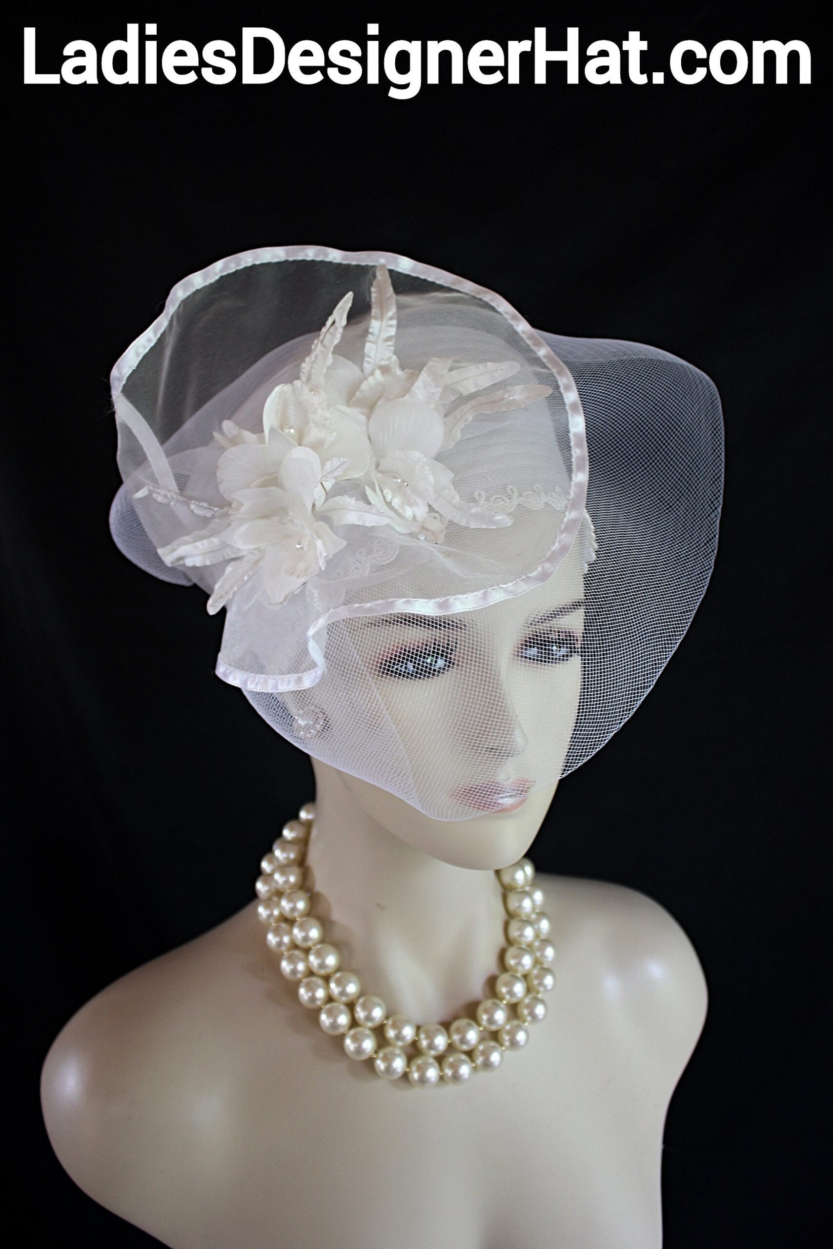Measurements: 22.5″ Standard Crown. Fits Most Women. Easy To Wear. Condition: New Custom Made Haute Couture Headpiece Wedding Hat Style: Sheer Pillbox Custom Made Hat.