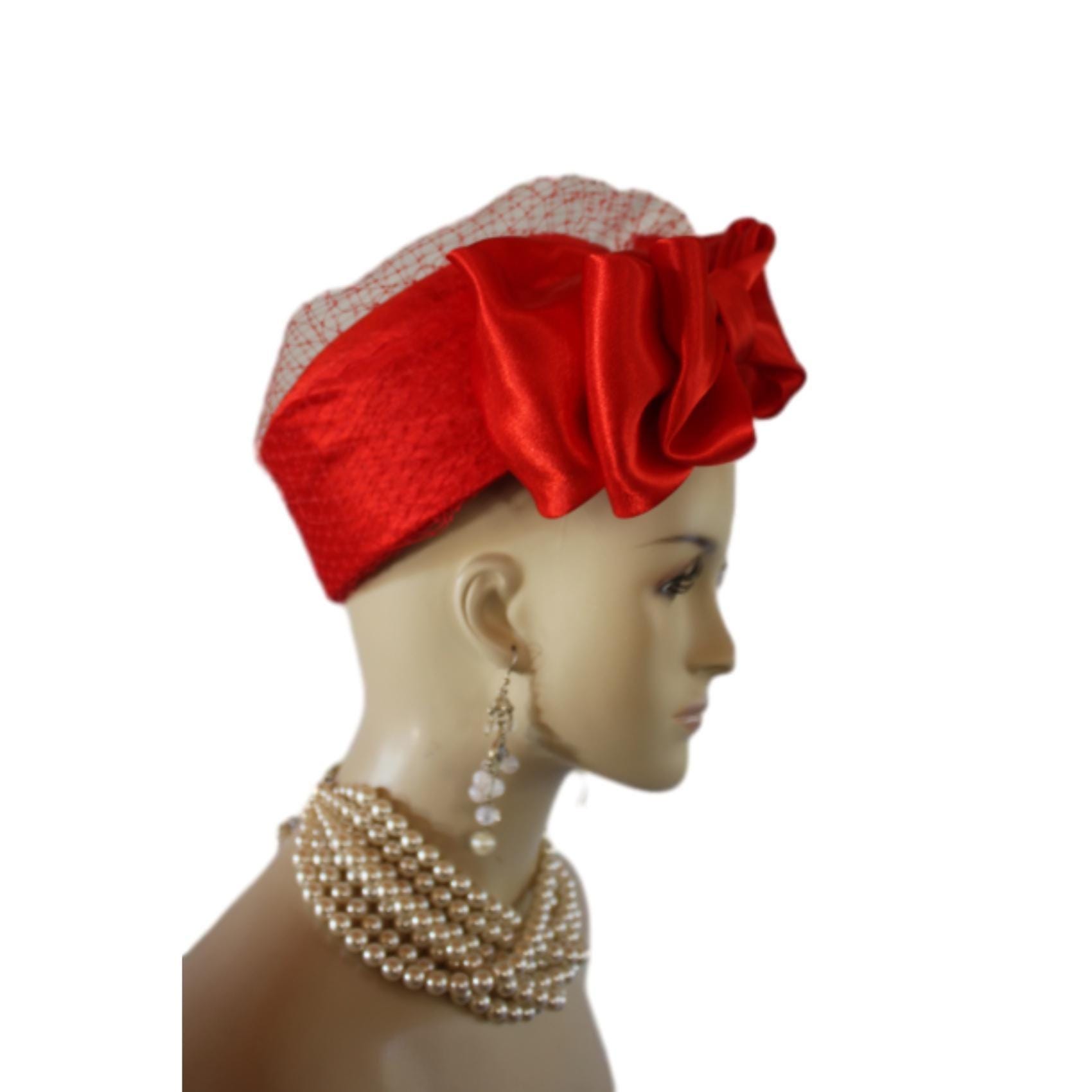Women’s Red Designer Formal Satin Pillbox Bridal Wedding Hat. This Elegant Red Satin Hat Is Embellished With A Satin Bow And Birdcage Netting Veil On Top And Side Of Hat. Note: Veil Does Not Cover The Face. The Bow Can Be Worn Toward The Front Of The Face Or Toward The Back Of The Head. A Perfect Hat For A Bride Or Mother Of The Bride Or Groom. This Designer Fashion Church Hat Is Custom Made And Designed By NY Fashion Hats Custom Millinery Headwear. http://www.nyfashionhats.com