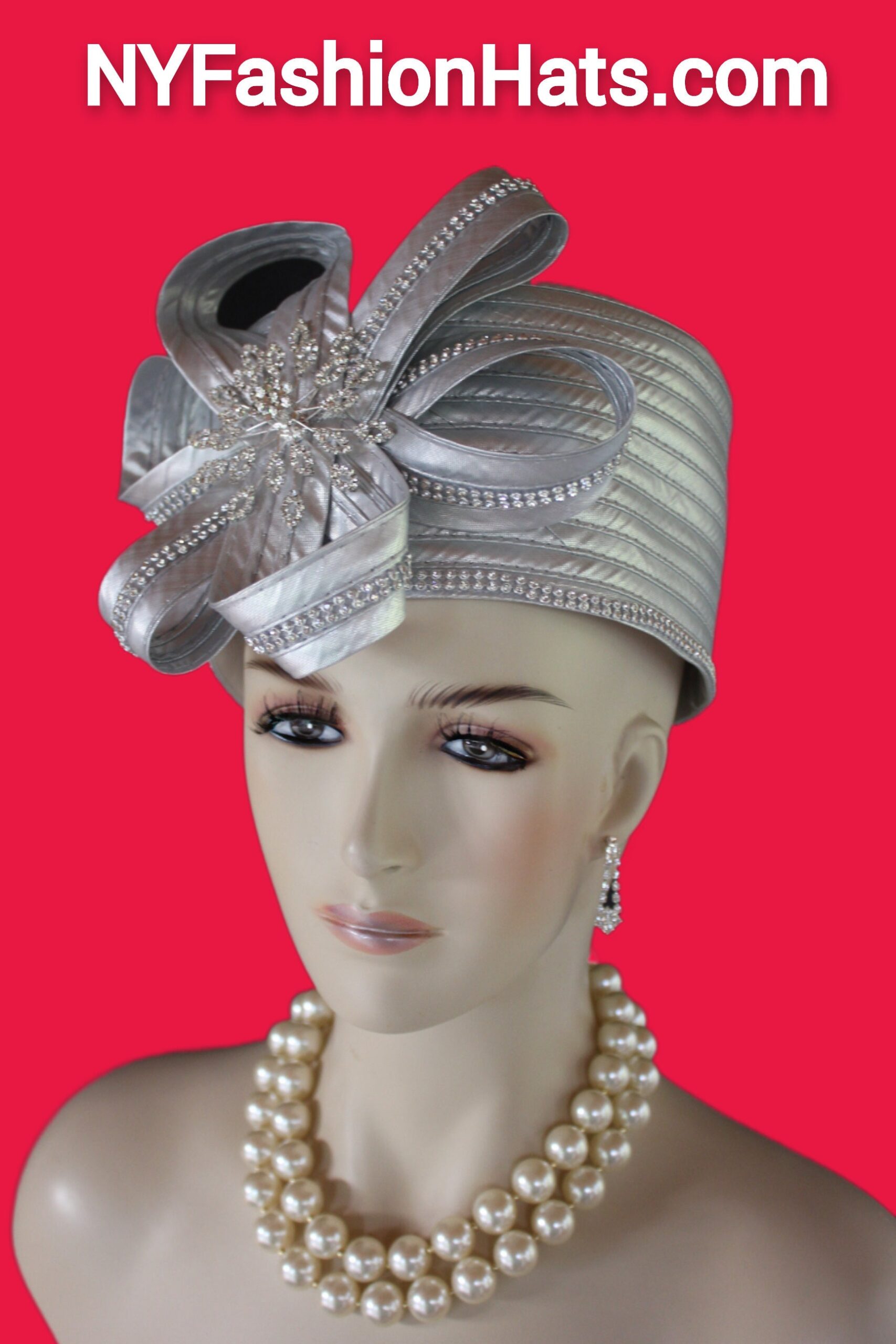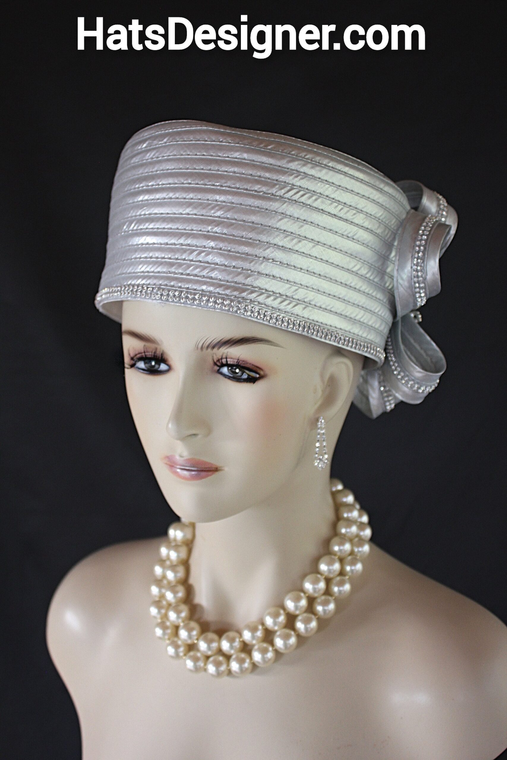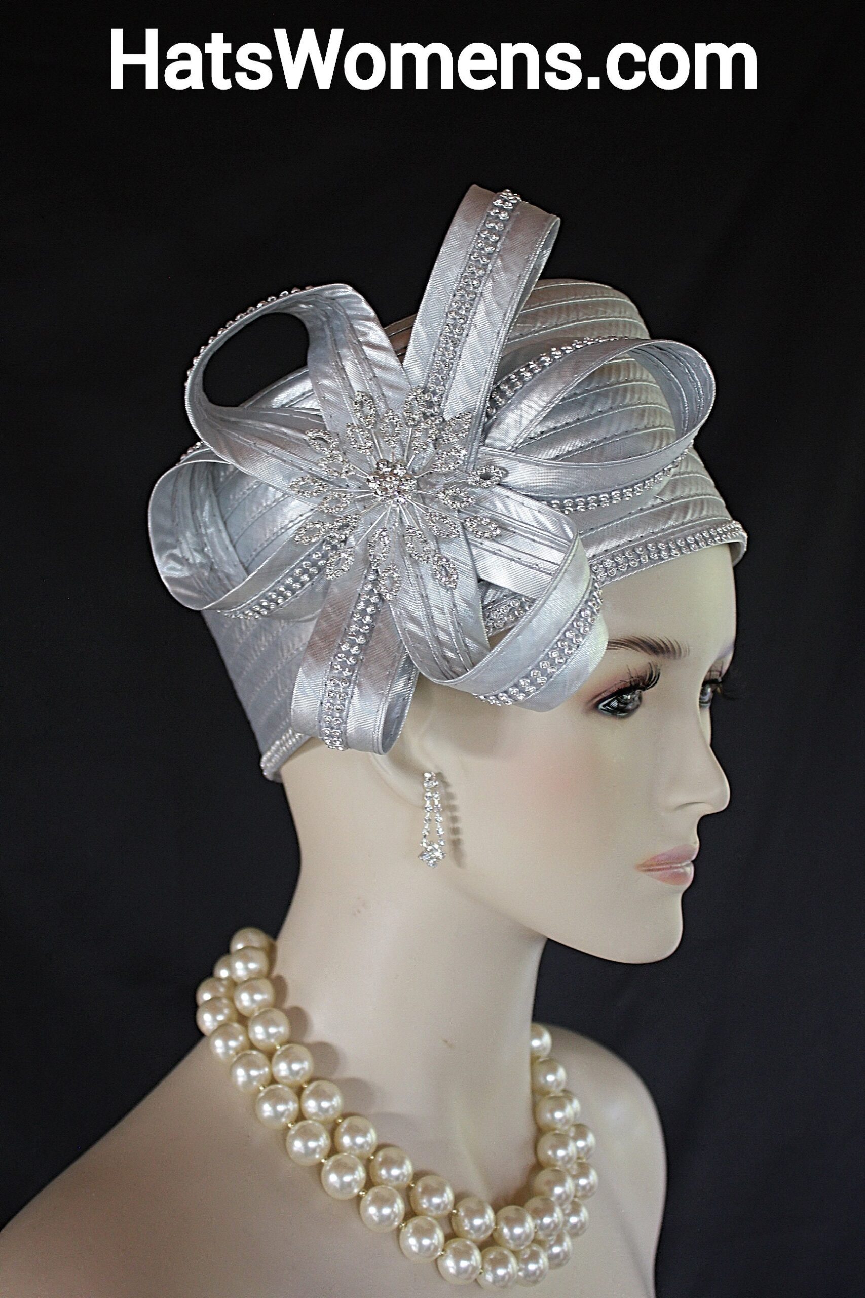 Women’s Metallic Silver Satin Haute Couture Formal Pillbox Hat. Formal Cocktail Wedding Church Hat. This Classic Styled Metallic Silver Dressy Pillbox Holiday Hat Is Embellished With A Satin Bow Enhanced With Rhinestones. This Bridal Mother Of The Bride Headpiece Can Be Worn With Embellishments Toward The Face Or To The Back Side Of The Head. This Elegant Satin Pillbox Hat Is Custom Made And Designed By NY Fashion Hats Couture Millinery. https://www.nyfashionhats.com. This New Collection Headpiece Is Part Of The Anastasia Konstandina Couture Headdress Line.