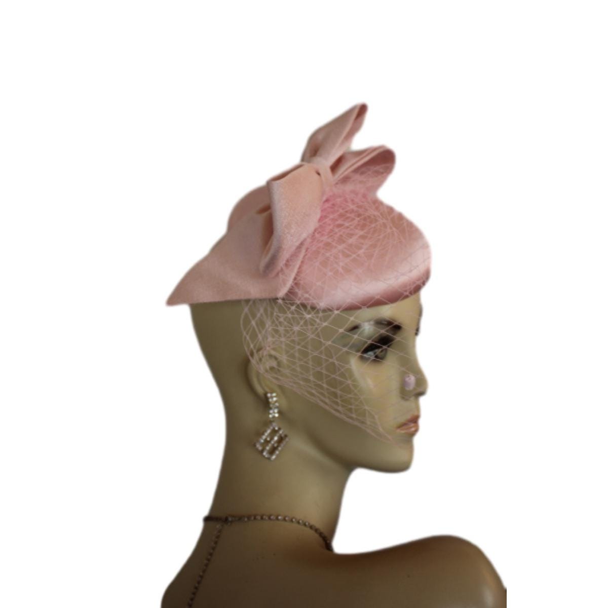 Women’s Soft Pink Haute Couture Wedding Bridal Satin Pillbox Fascinator, This Classic Styled Soft Pink Formal Pillbox Holiday Fascinator Hat Is Embellished With A Satin Bow Enhanced With A Dotted Pink Birdcage Veil. This Bridal Mother Of The Bride Headpiece Can Be Worn With Embellishments Toward The Face Or To The Back Of The Head. This Elegant Satin White Small Pillbox Saucer Hat Is Custom Made And Designed By NY Fashion Hats Couture Millinery. https://www.nyfashionhats.com. This New Haute Couture Designer Collection Is Part Of The Anastasia Konstandina A Bid Of Romance Headdress Line.
