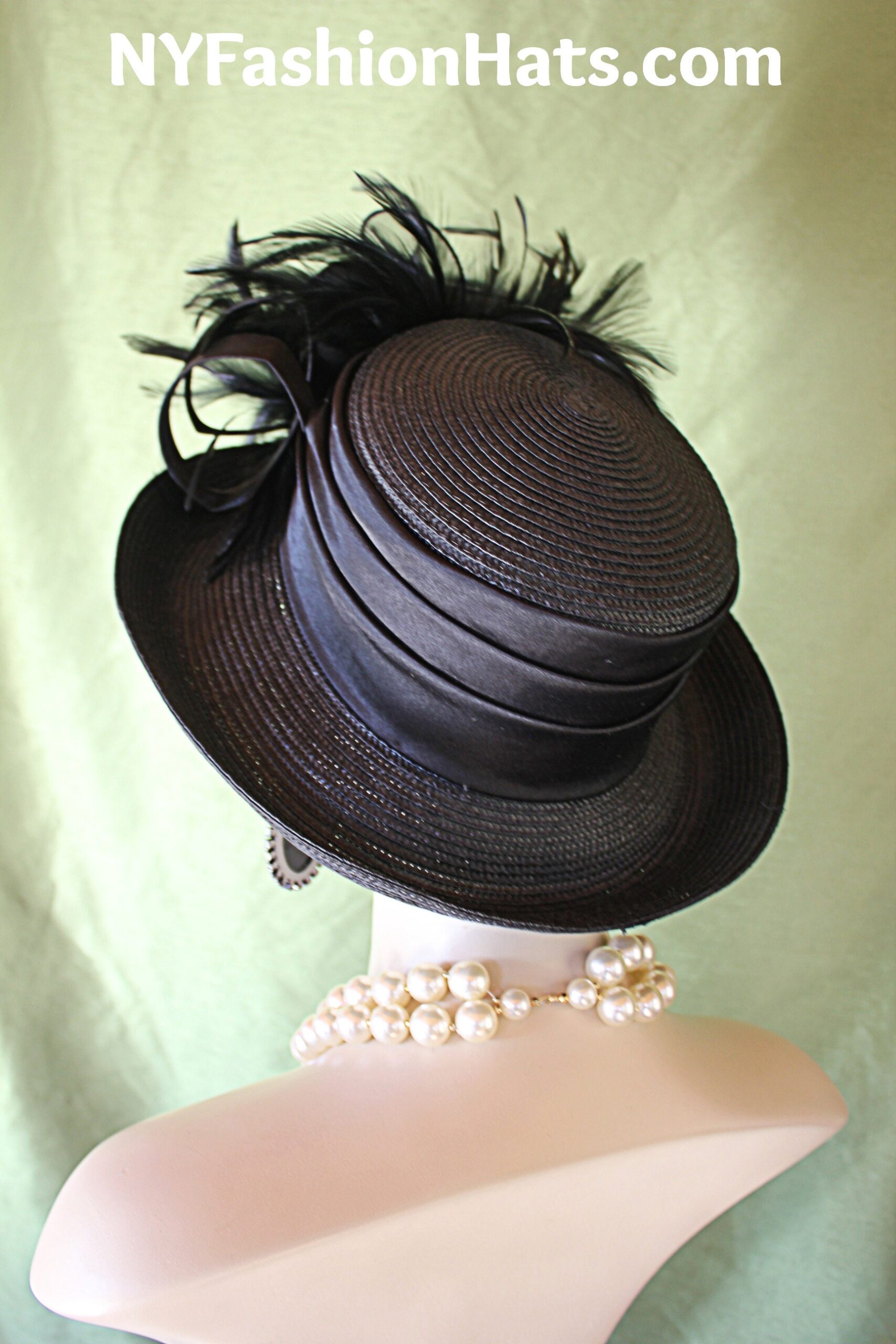 Polypropylene Straw Braid,Horsehair Bowing,Hackle Rooster Feathers,Custom Made Couture Designer Hat,NYFashionHats Haute Couture Millinery,Black Luxury Designer Hat With Feathers,Hat For Horse Races Custom Made Headwear,Kentucky Derby Hat Customize This Fashion Hat,Mother Of The Bride Hat Customize