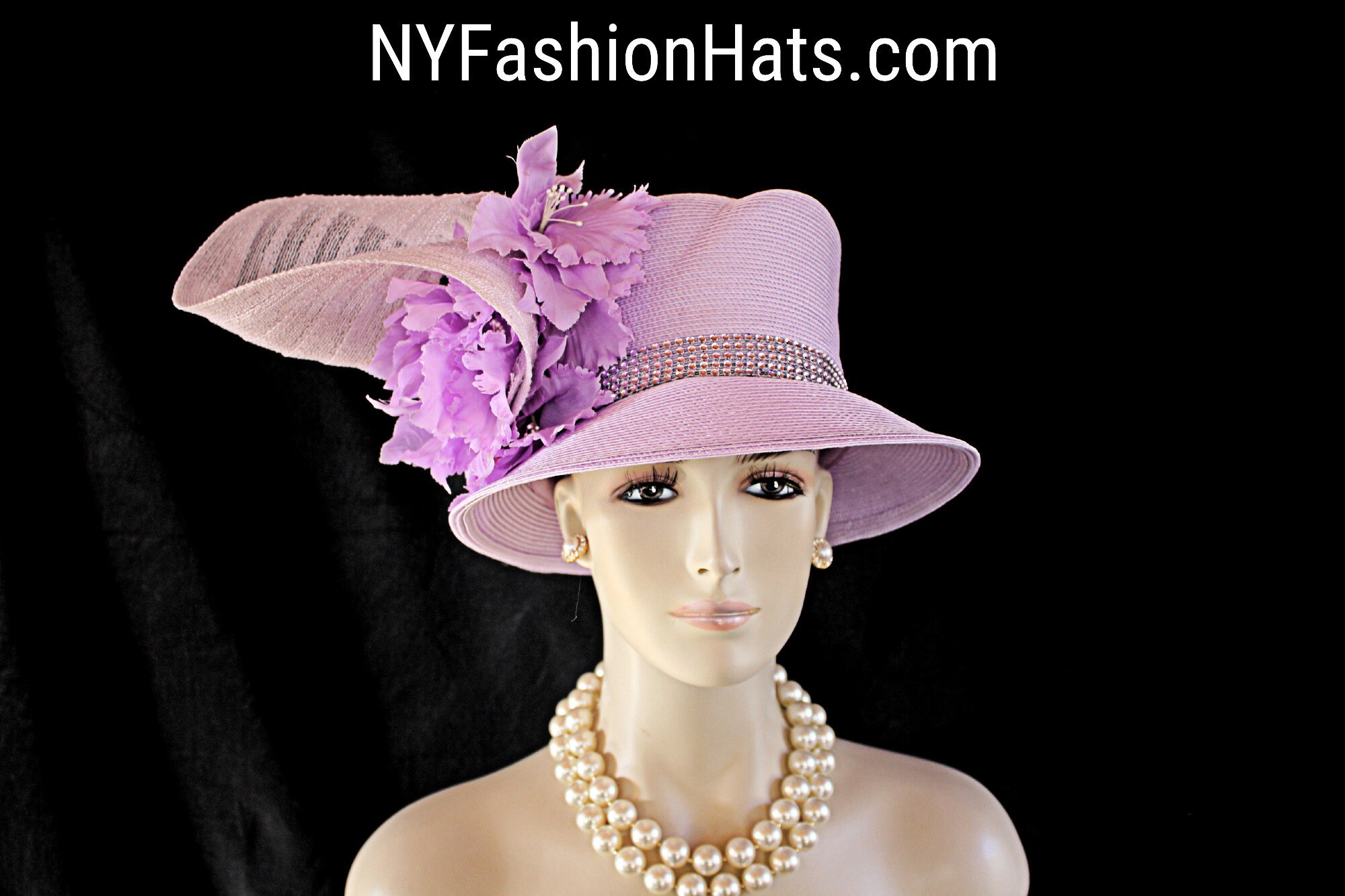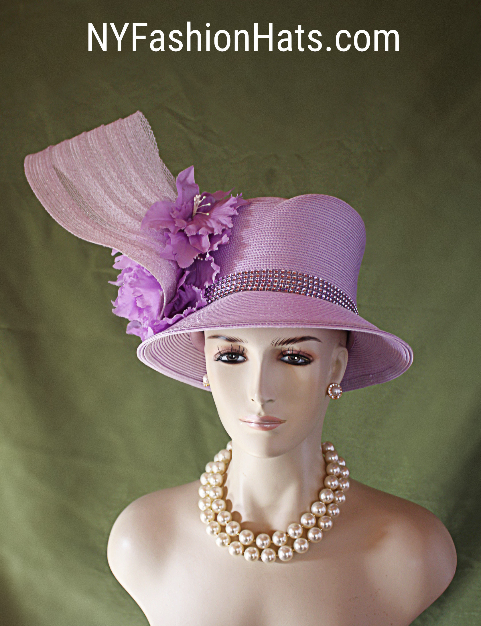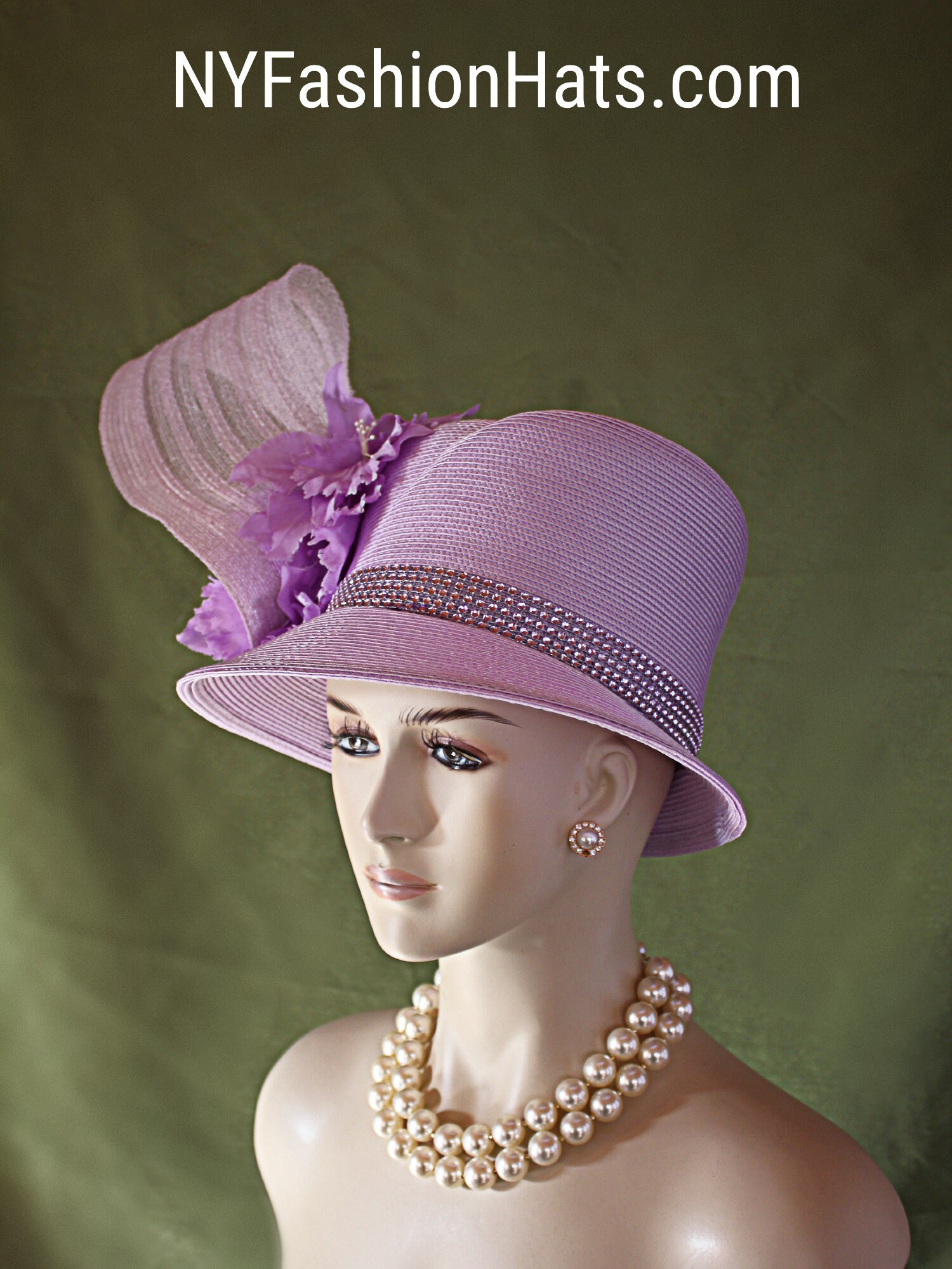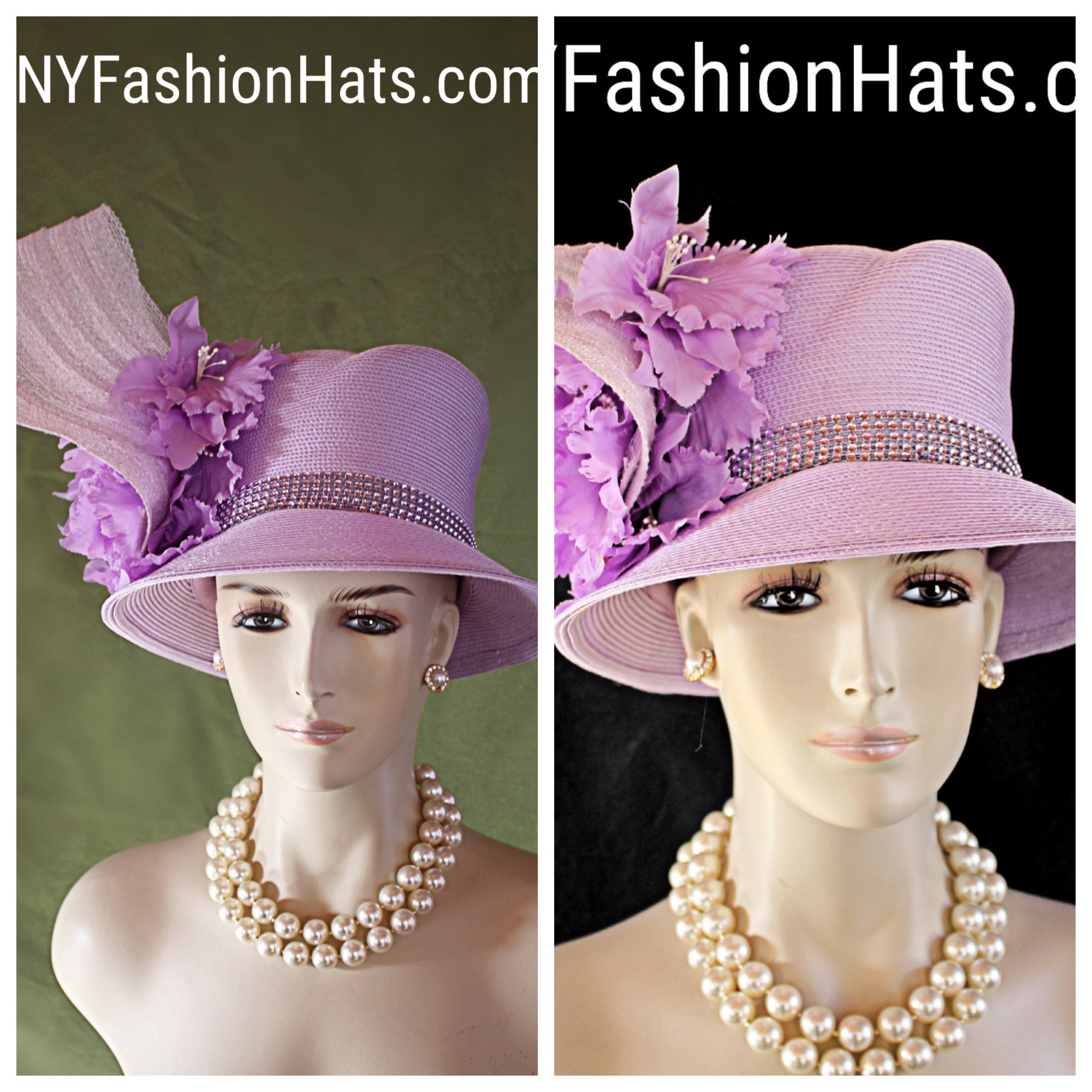 NYFashionHats Haute Couture Hat Millinery,Mother Of The Bride Hat Headpiece,Soft Purple Vintage Orchid Silk Flowers,Purple Haute Couture Luxury Designer Hat,Acrylic Rhinestone Trim,Handmade Sculptured Hat,Vintage Purple Silk Leaves Rhinestones,A Symmetrical Brim Hat,Shaped High Crown Hat,Purple Poly Straw Braid