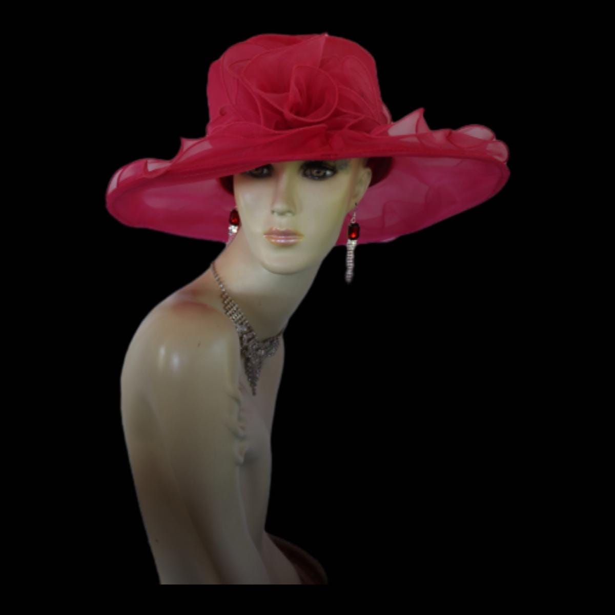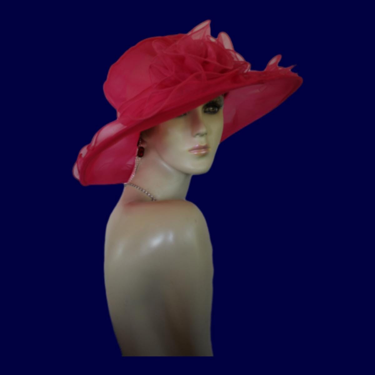 Elevate your style this season with our exquisite Women’s Magenta Hot Pink Large Sheer Brim Organza Big Bow Formal Wedding Kentucky Derby Hat. Custom crafted from luxurious hot pink magenta fuchsia organza, this stunning headpiece is not just a hat; it’s a statement of elegance perfect for any special occasion. Whether you’re attending horse races, weddings, or formal church events, its large brim and intricate design will ensure you stand out in the most sophisticated way.